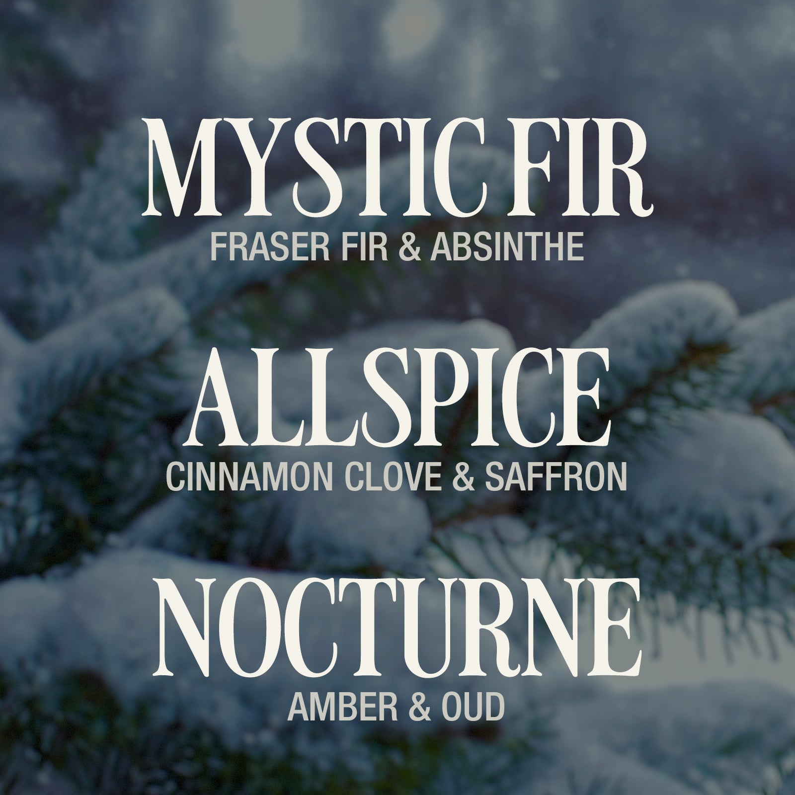 Mystic Fir: Embark on a winter journey with the crisp fragrance of Fraser fir, black currant, and a touch of absinthe. Let the whispers of snowy evergreen forests fill your home with the magic of the season.